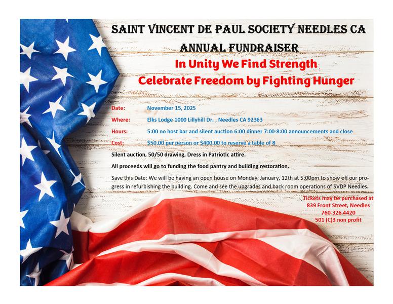 St. Vincent de Paul Society in Needles accepts donations of clothing, household items, and anything else we can sell in our thrift store.